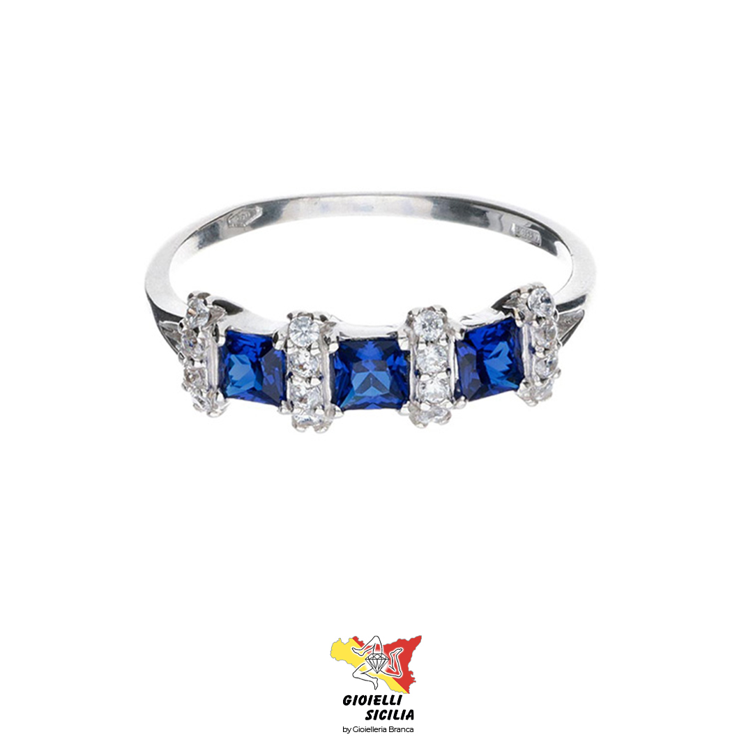 Modello con Pietre di Colore Blu separate da zirconi bianchi nel mezzo