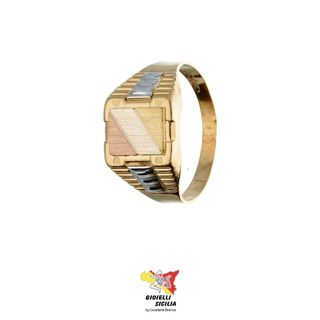 Anello da Uomo in Oro 18 Kt. 750°/oo con Tre colori dell’Oro