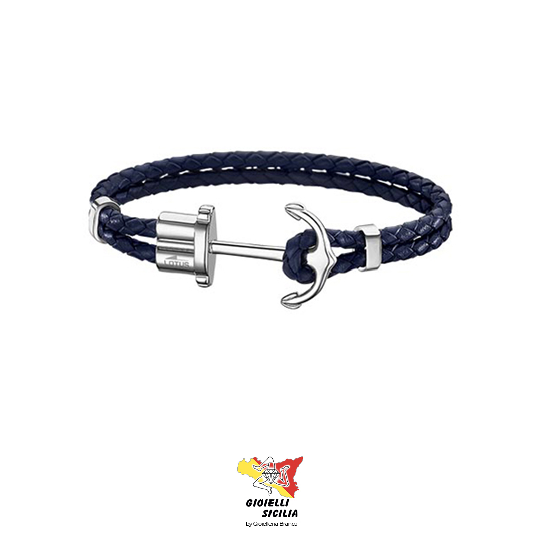 Il corpo del bracciale è di cuoio blu