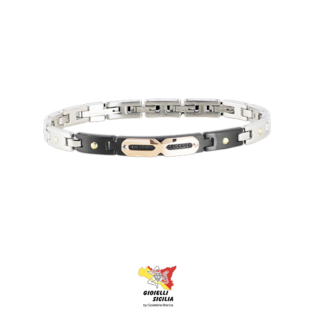 Al centro una fantasia in PVD Oro Rosa con spinelli neri